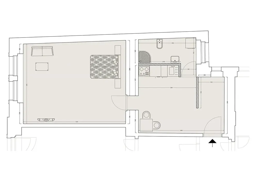Zrekonstruovaný nezařízený byt 2+kk, o celkové ploše 40,90m2, je situovaný ve 5.NP reprezentativní budovy s výtahem, v oblíbené lokalitě Praha 2 Nové Město. Interiér bytu je nyní nezařízený a byt lze zařídit základním nábytkem za navýšení nájmu 50,Kč/m2/měsíčně. Dispozičně nabízí předsíň (3,93m2), světlý obývací prostor spojený s ložnicí (22,40m2), kuchyňskou část (10,31m2) s novou kuchyňskou linkou a se spotřebiči: lednice s mrazákem, varná deska, elektrická trouba, digestoř. Moderní koupelna disponuje sprchovým koutem, toaletou a pračkou.