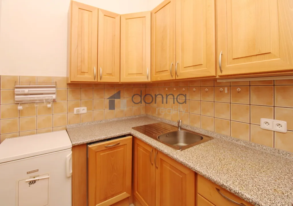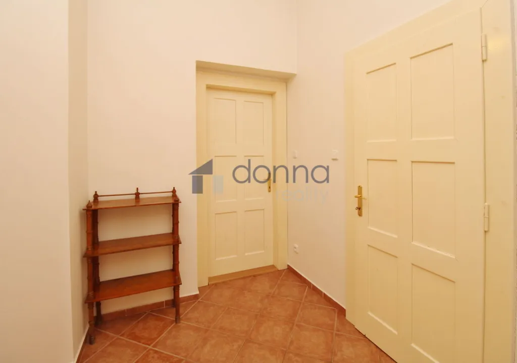 Dům je zrekonstruovaný, bez výtahu. Byt je velice tichý a sestává z předsíně, kuchyně, dvou velkých pokojů s výhledem do klidného vnitrobloku, koupelny a technické místnosti s pračkou. V kuchyni myčka, plynová varná deska, elektrická trouba, digestoř, malá lednice. Koupelna s rohovou vanou a toaletou. V pokojích jen šatní skříň. Plynový kotel na ohřev vody a topení. Podlahy parkety a dlažba. Volný od 1. 4. 2026.