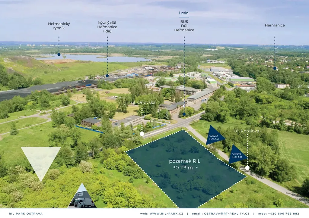 Nabízíme k prodeji pozemky o celkové výměře 30 113 m², na které je vydáno pravomocné stavební povolení pro výstavbu průmyslového areálu RIL Park Ostrava.