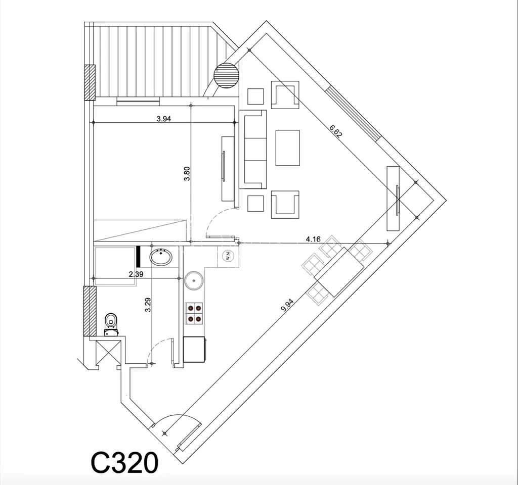 Nabízený byt má započtenou plochu 95 m2 (včetně podílu na společných prostorách, přibl. 20 % ze započtené plochy). Byt má dispozici typu 2+kk (obývací pokoj s kuchyňským koutem, ložnice, velká koupelna s WC) s lodžií v ložnici. Byt se nachází na 3. patře čtyřpatrové budovy s výtahy, výhled je na klidný bulvár Mamsha a klidnou bytovou zástavbu se zelení. Orientace bytu je jižní.