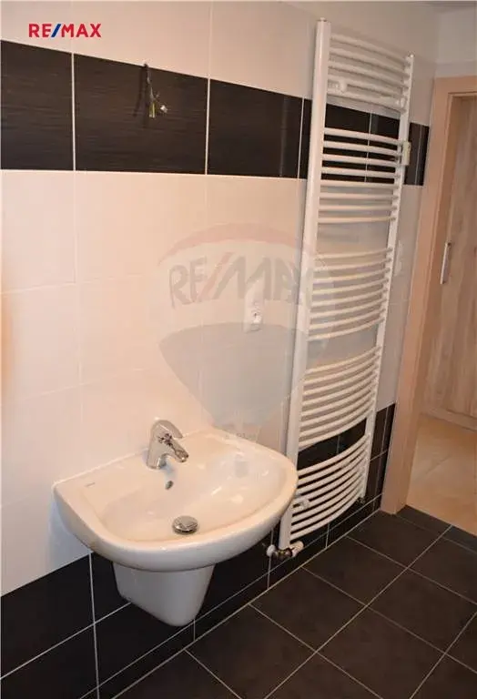 Koupelna je s vanou a toaletou. K bytu náleží vlastní balkon ( cca 4 m2), sklep přímo na patře ( cca 3 m2) a garážové stání.