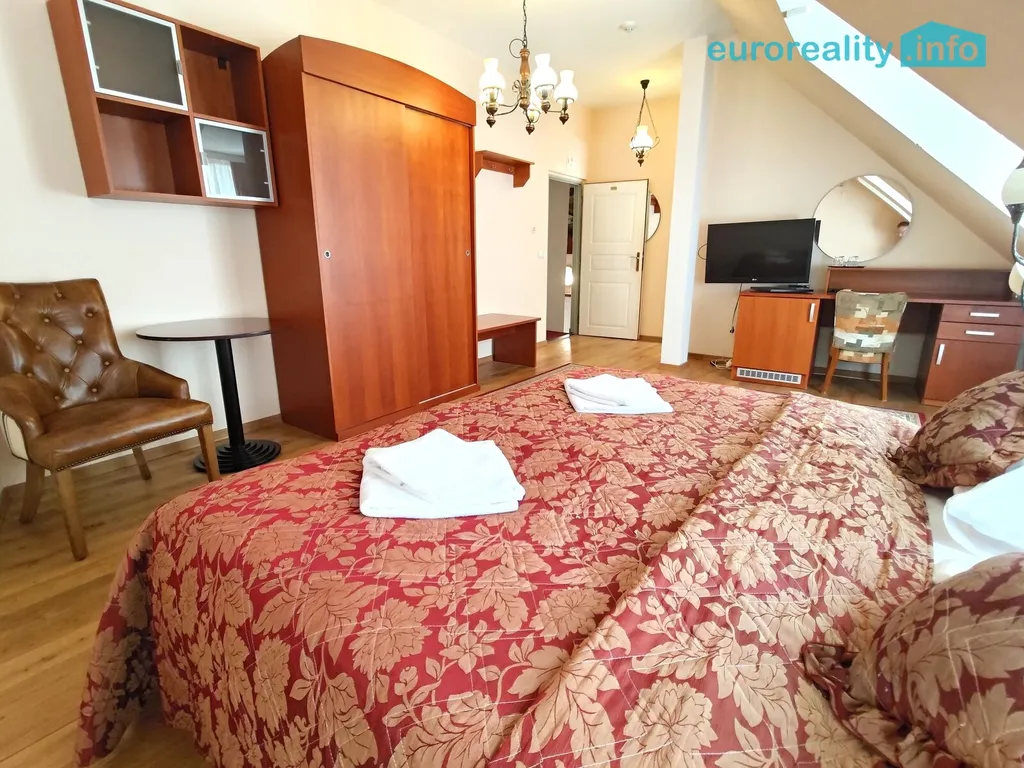 Nabízíme k pronájmu luxusně zařízený hotelový apartmán 4+1 s klimatizací, který je mimo jiné vhodný pro firemní manažery, sportovce, zahraniční studenty apod. Nachází se v centru Plzně v hotelovém komplexu s atriem pro příjemné a klidné posezení. Má velikosti 110 m2. Jedná se o tři samostatné luxusně vybavené pokoje s koupelnou a WC, s klimatizací, lednicí a televizí a společné kuchyně s pračkou ve dvou úrovních.