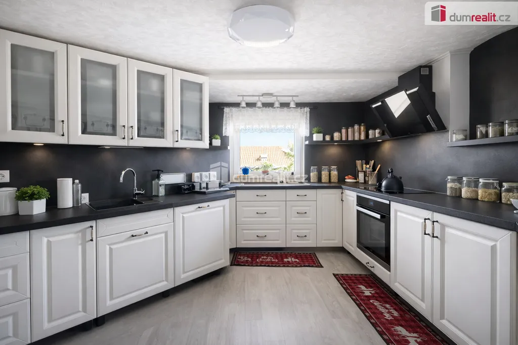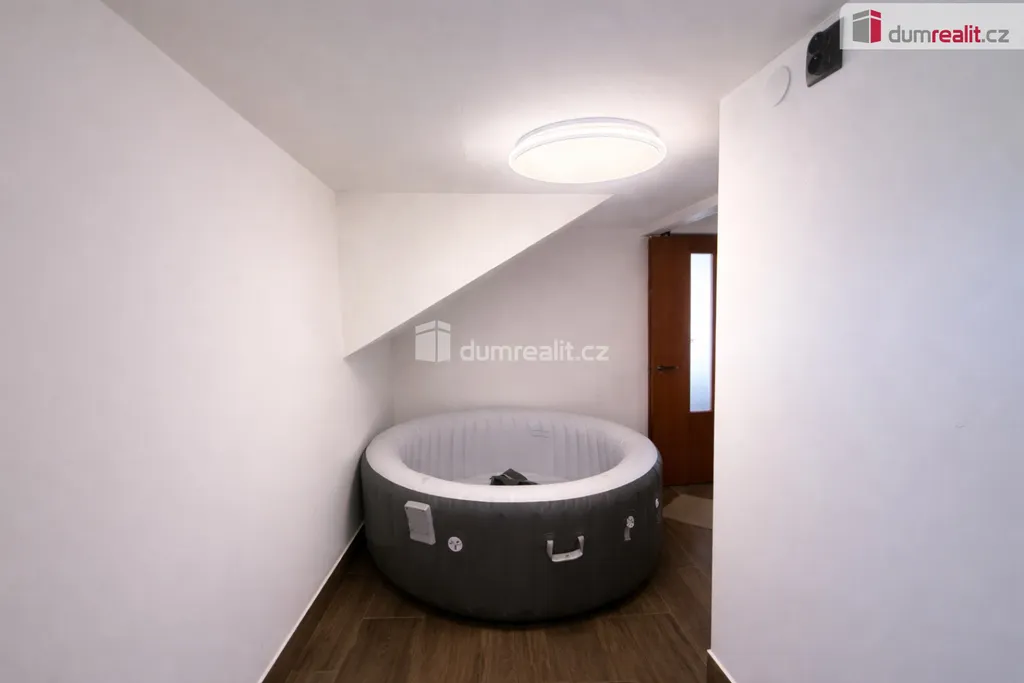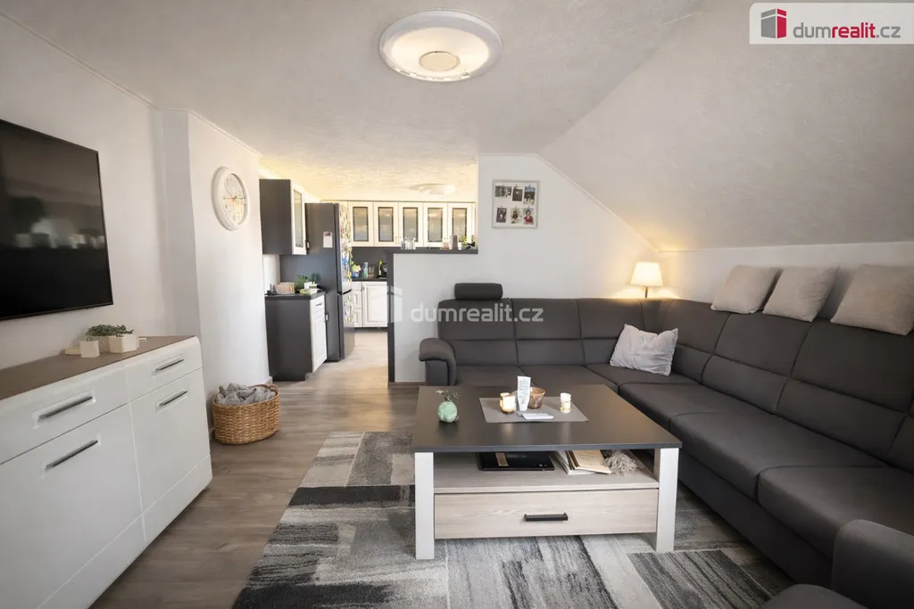 Druhé patro nabízí další obytný prostor s krásnou, moderní kuchyní, obývacím pokojem, ložnicí a pracovnou. Odtud je také přístup do podkroví, kde se nachází dva útulné pokoje, ideální například pro děti.