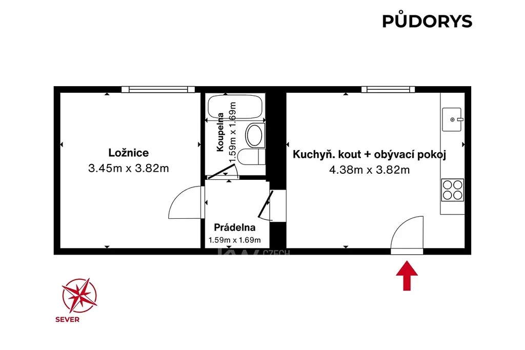 K podnájmu nabízíme byt o dispozici 2+kk a užitné ploše cca 36 m2.
