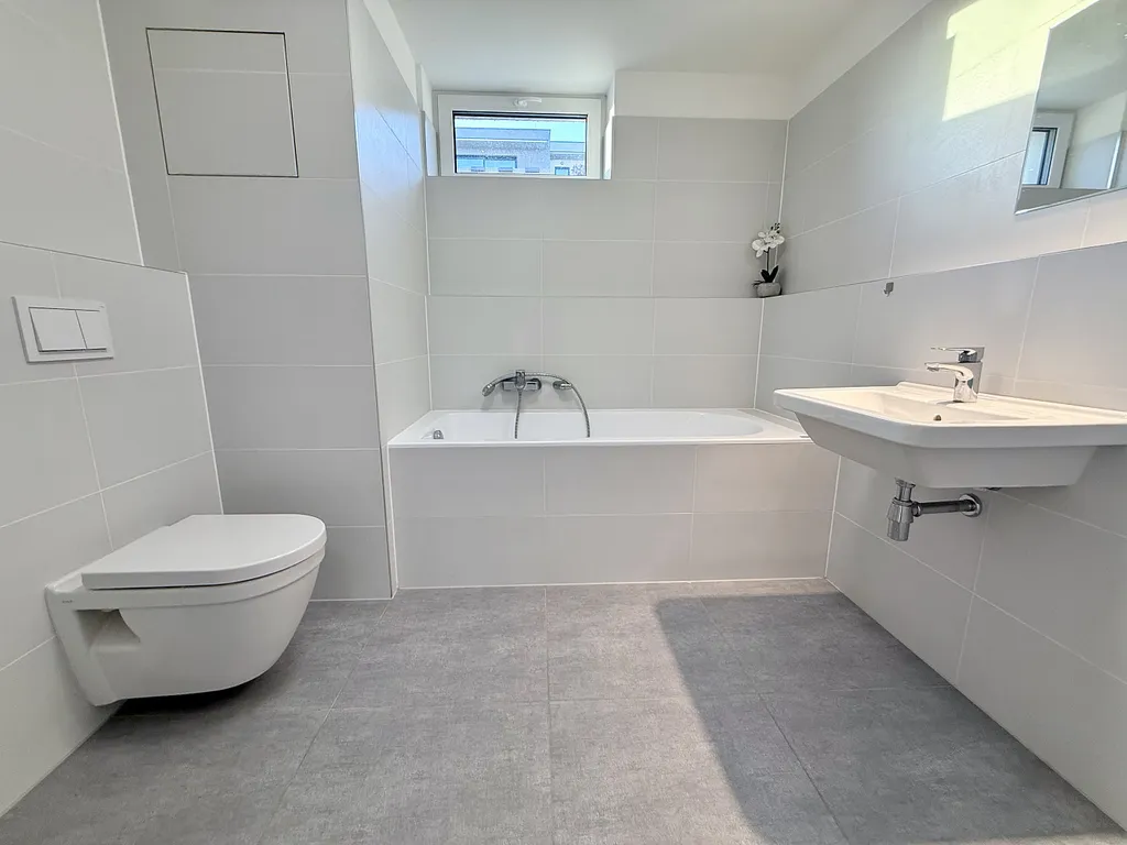 Koupelna je provedena v moderních zemitých tónech a nabízí nadčasové a elegantní řešení pro každodenní užívání.