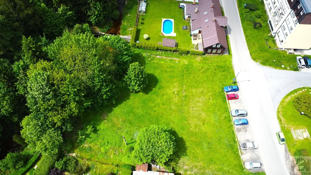 Prodej pozemku v obci Desná v Jizerských horách o výměře 1668 m² . Pozemek je umístěn u bývalého lyžařského areálu Křížek - Desná I na křižovatce ul. Údolní a ul. Zásnubní,