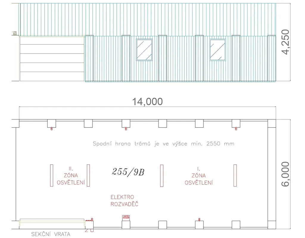 - sekční vrata ovládaná GSM modulem nebo dálkovým ovládáním