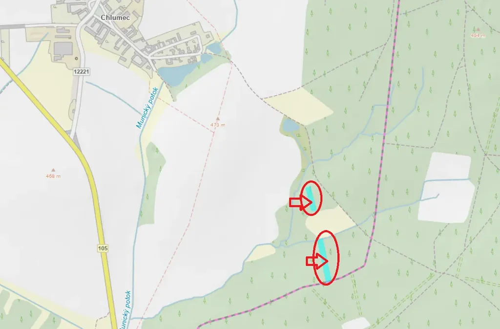 - p.č. 844/9 vedená jako lesní pozemek o celkové výměře 1 747 m2 (stáří lesa 145 let - zastoupení dřevin smrk, bříza, stáří lesa 101 let - zastoupení dřevin smrk, bříza, dub, stáří lesa 100 let - zastoupení dřevin olše).