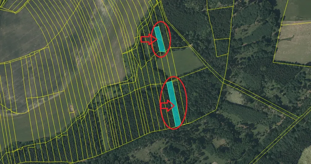 Pozemky jsou na rovině, dobře přístupné po lesní cestě (kousek se jede po louce).