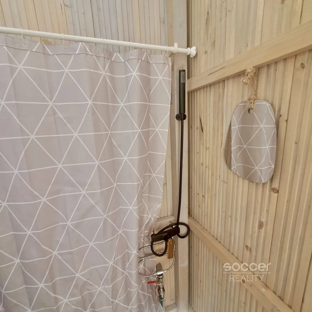 Rekreační karavan zajišťuje útulné zázemí a je vybaven nábytkem. Má sociální zařízení (chemická toaleta a sprcha jsou umístěny v přístřešku), je napojen na pitnou vodu i elektřinu (možnost umístit si např. i průtokový ohřívač vody). K dispozici je také plynový gril. Pro údržbu je zajištěn zahradní traktůrek a základní náčiní. Zahrada je kompletně oplocená (pod uzamčením) a parkovat je možné na oploceném pozemku.