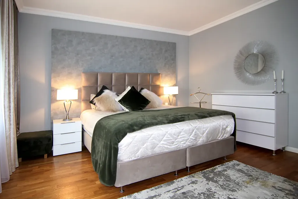Velkorysý prostor: Byt disponuje hlavní ložnicí o ploše 23 m2 s vlastní koupelnou a šatnou. Další dvě ložnice (16 m2 a 11,5 m2) jsou ideální pro rodinu či hosty. Prostorný obývací pokoj (40 m2) s přístupem na balkon (8 m²) nabízí nádherný výhled do parku.