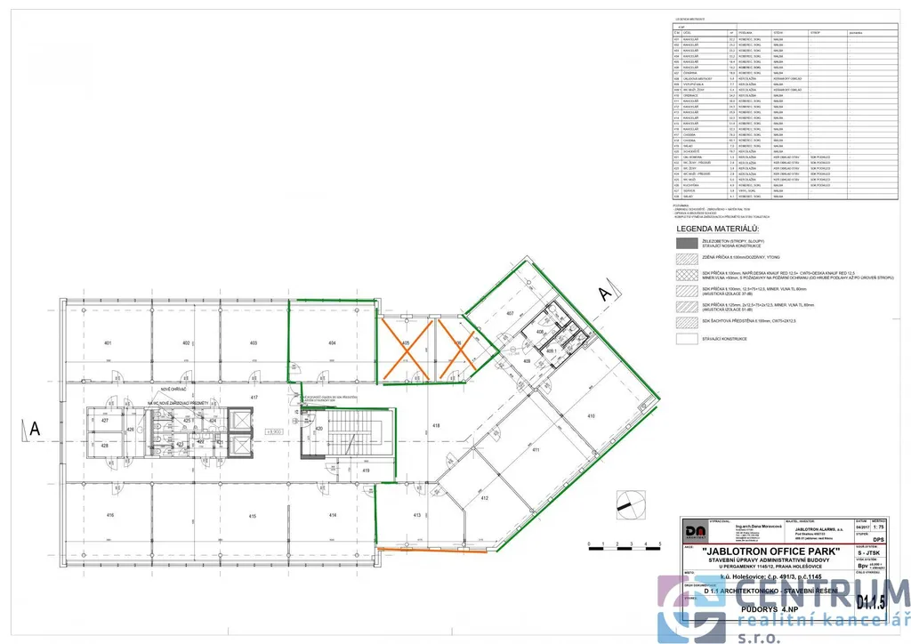Nabízíme k pronájmu kancelářské prostory 4. patře moderní administrativní budovy s výtahem v klidné části Prahy 7 Holešovice, ulice U Pergamenky.