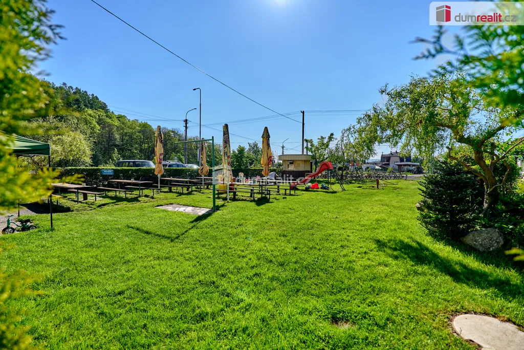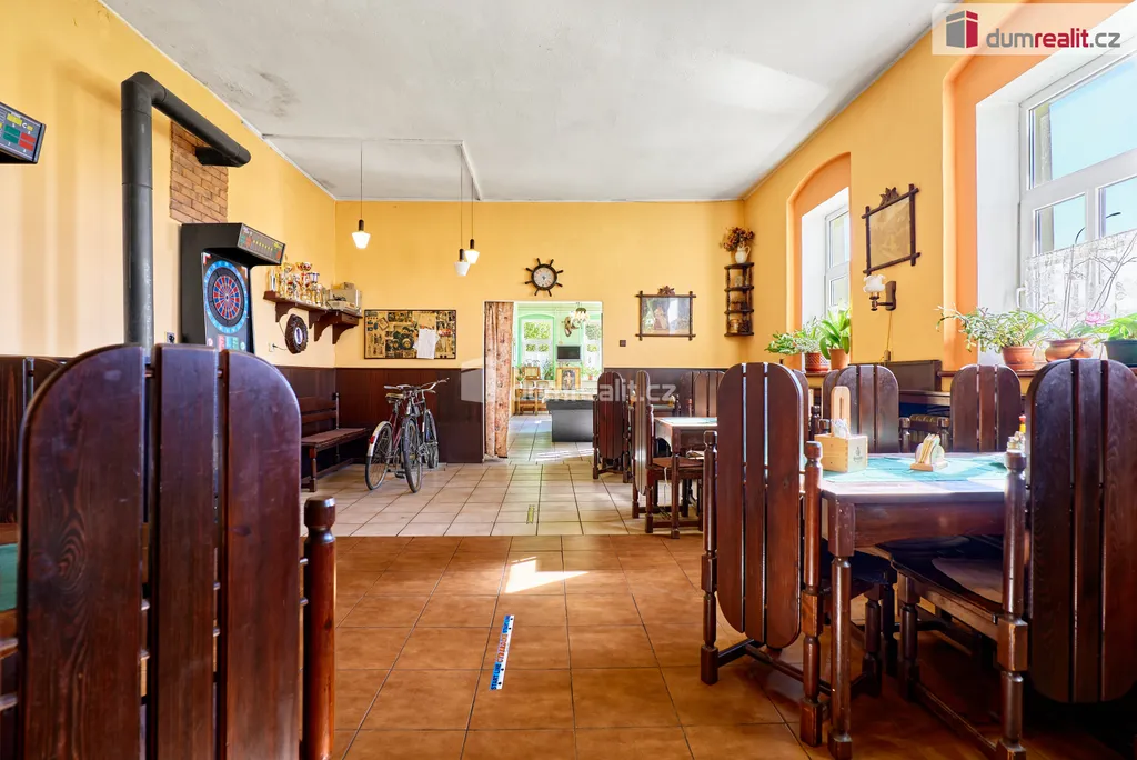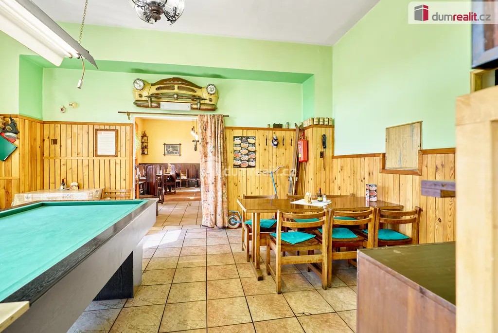 Dumrealit.cz Vám zprostředkuje prodej zavedené a oblíbené restaurace s penzionem "Rafanda" v obci Hroznětín na úpatí Krušných hor. V přízemí objektu je restaurace (25 míst) a salonek (35 míst), výčep, kuchyně, sklady, WC a kotelna, ve které je umístěn plynový kotel a el. bojlery. V prostoru restaurace jsou krbová kamna s výměníkem. V 1. patře jsou 4 pokoje s celkem 11 lůžky, společné sociální zařízení (WC a sprchy) a kuchyňský kout. V podkroví je byt 2+1. Sklep je využíván jako sklad nápojů. Na zahradě je venkovní posezení se 60 místy a samovýčep pro cyklisty a turisty. Budova je zateplená, na části je nová střecha. Objekt leží na hlavním silničním tahu do Krušných hor, v těsné blízkosti cyklostezky, která je součástí místní široké sítě cyklistických, turistických a běžeckých tras, vlakové a autobusové stanice. V obci je všechna potřebná občanská vybavenost. Možnost investičně využít jako ubytovnu pro zaměstnance s vlastní jídelnou. Koupě je možná i kombinací s jinou nemovitostí. Ev. číslo: 647398.