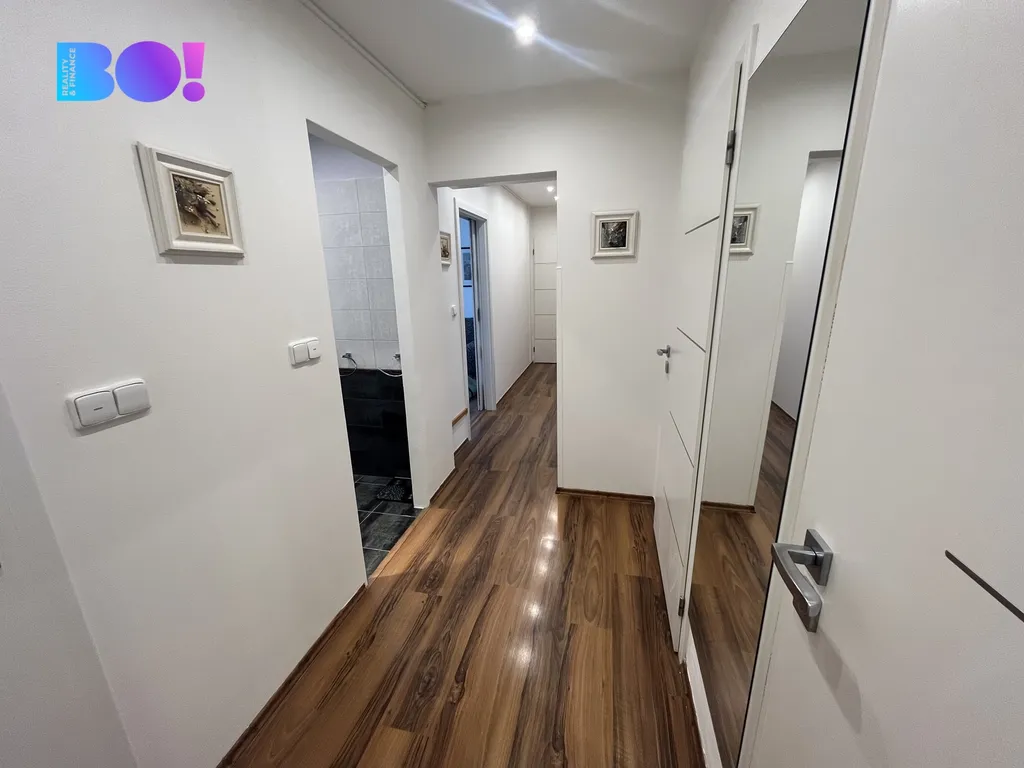 Byt se nachází v 5. patře a prošel kompletní rekonstrukcí, díky které nabízí komfortní a moderní bydlení. Dispozice zahrnuje světlý obývací pokoj, samostatnou kuchyň, tři ložnice, koupelnu s vanou, samostatné WC, prostornou chodbu a praktickou komoru. Velkou výhodou je také prostorný balkón, ideální pro odpočinek.