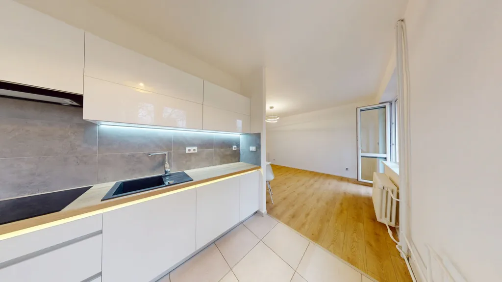V bytě jsou položeny moderní plovoucí podlahy. Kuchyně je plně vybavena vestavěnými spotřebiči – elektrickou troubou, mikrovlnnou troubou, varnou deskou, digestoří a myčkou nádobí. Koupelna disponuje vanou, umyvadlovou skříňkou a přípojkou na pračku. Toaleta je oddělena, což zvyšuje komfort bydlení.