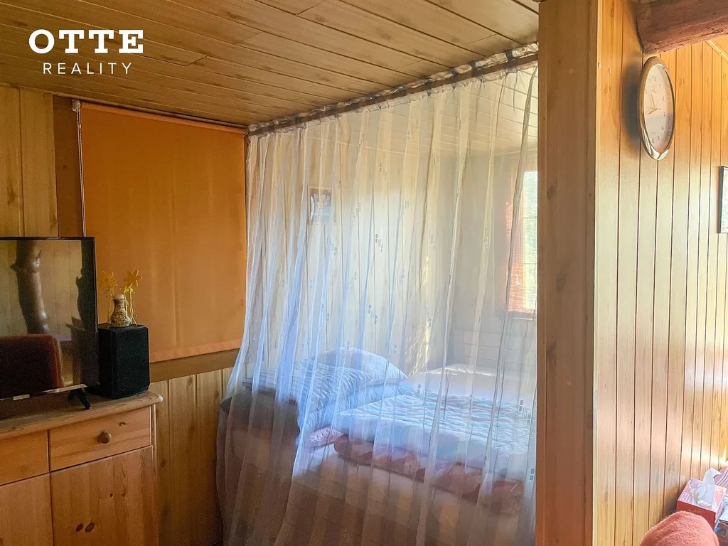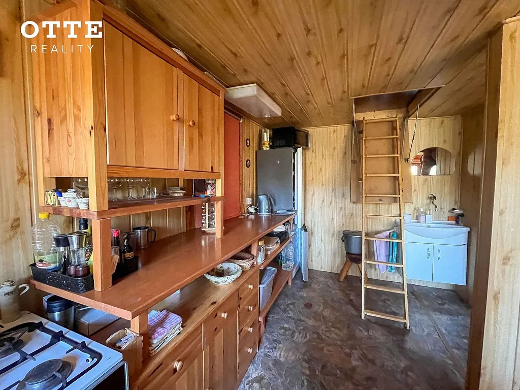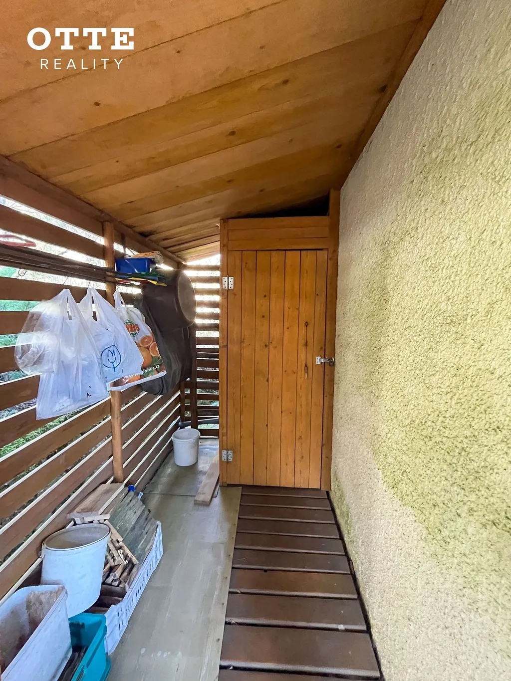 Po dřevěných schodech se vystoupá do podkroví, kde se nachází ložnice se dvěma lůžky a úložnými prostory. Z ložnice se vchází na zastřešenou lodžii o velikosti cca 3,4 m2, která poskytuje možnost posezení s výhledem do okolní přírody a na přehradu. Objekt je podsklepený světlou výškou cca 1,6 m, což nabízí dostatek úložného prostoru. Výměra suterénu je cca 27 m2.Všechny místnosti v chatě jsou vkusně zařízené a v celé chatě je dbáno na pořádek a čistotu.