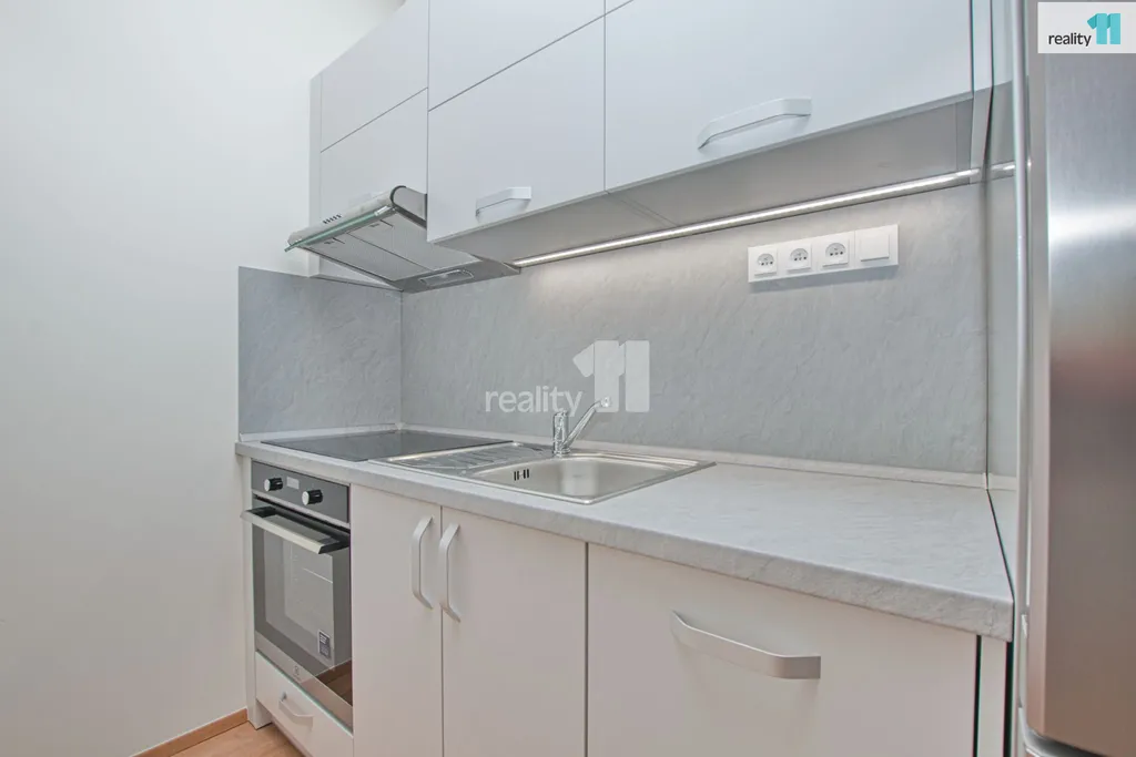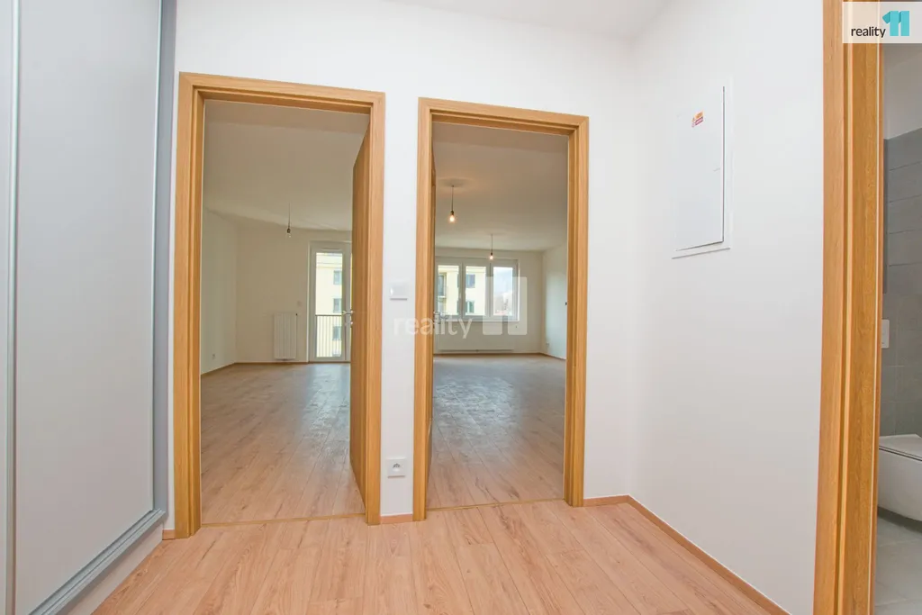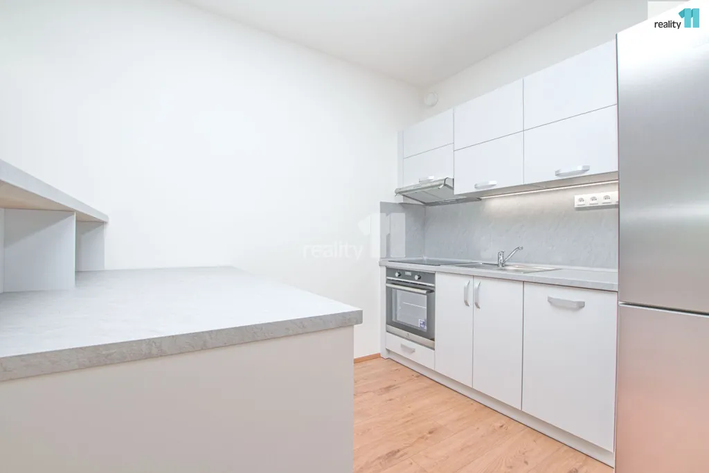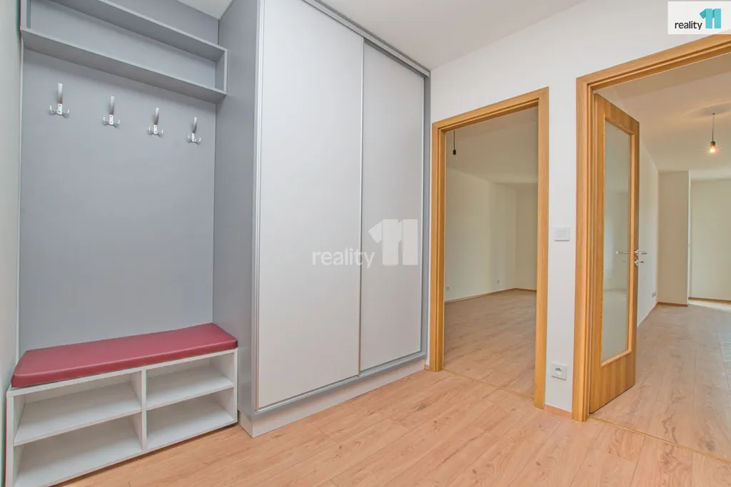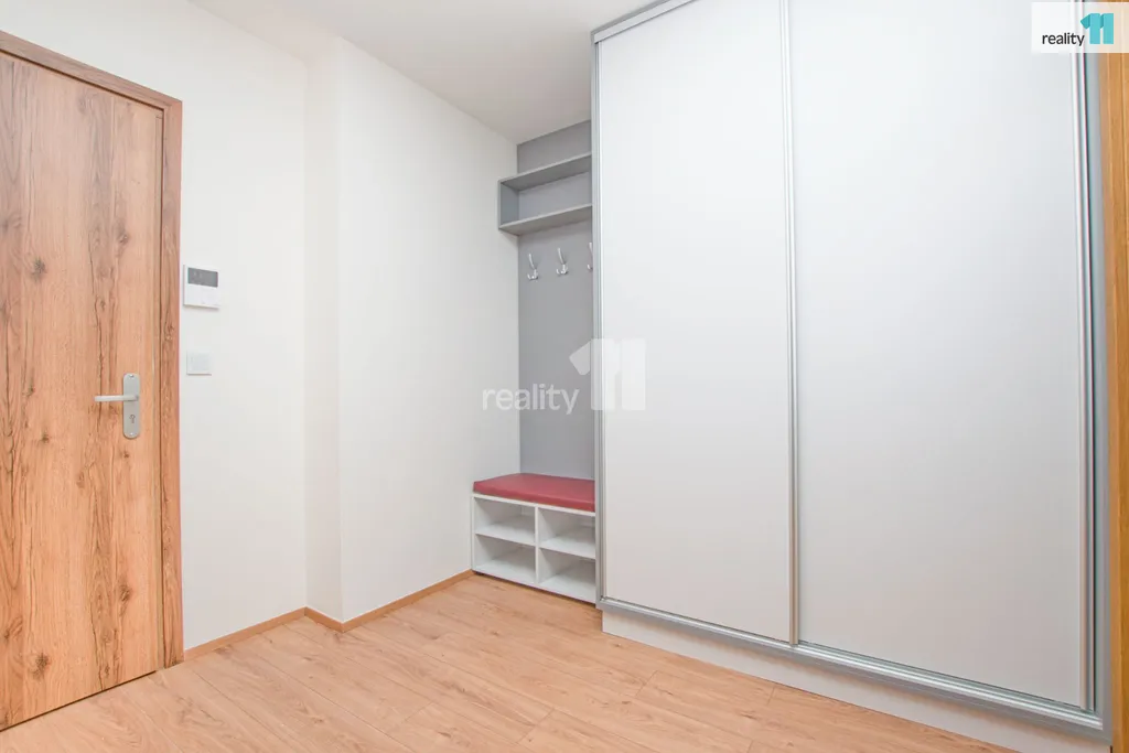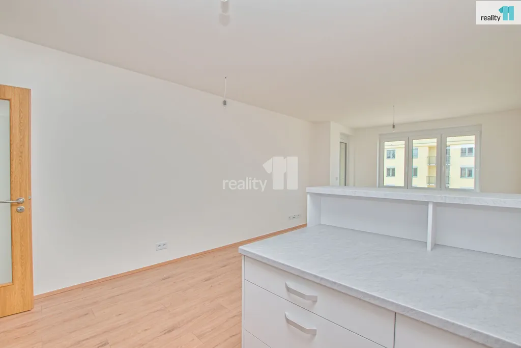 Jednotka je vybavena novou kuchyňskou linkou a barovým pultem, pro ještě větší komfort je byt vybaven venkovními žaluziemi na dálkové ovládání, které nejsou běžně součástí nových bytů a v předsíni vestavnou skříní a botníkem..