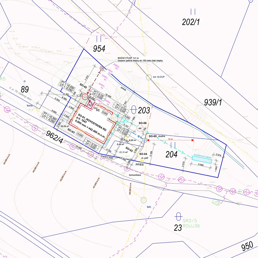 Součástí prodeje je projekt patrového rodinného domu včetně probíhajícího stavebního řízení. Budoucí majitel tak může výrazně ušetřit čas i náklady a plynule navázat na přípravu stavby.
