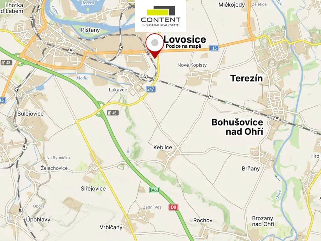 - komerční park v dojezdové vzdálenosti 3 km od exitu č. 45 dálnice D8