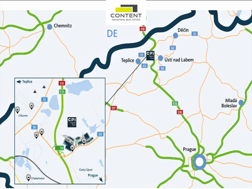 V zastoupení majitele a bez provize nabízíme prostory vhodné pro sklad nebo výrobu, v novém komerčním parku s výborným dopravním napojením na dálnici D8.