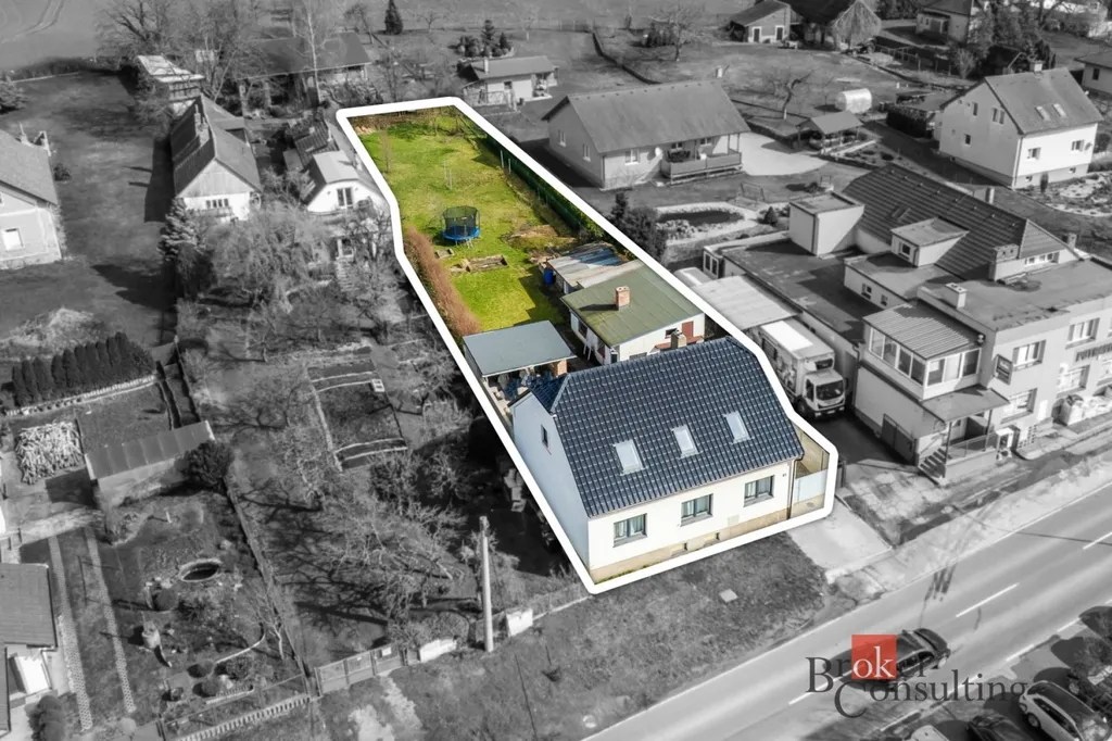 Na pozemku se nachází dvůr se zámkovou dlažbou, pergola a samostatná stavba s garáží, dílnou a dalšími úložnými prostory. Zahrada je mírně svažitá a pečlivě udržovaná, nabízí dostatek soukromí i prostoru pro odpočinek.
