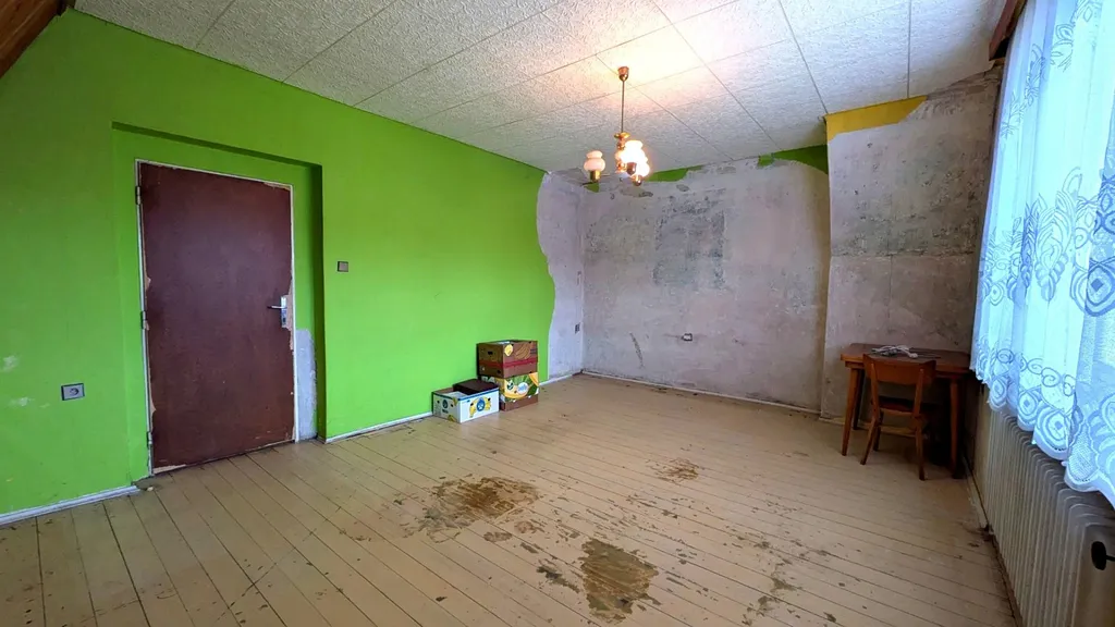 V patře jsou dva samostatné pokoje, samostatné WC a vstup na půdu. Půdní prostor je aktuálně neobytný a může sloužit jako sklad nebo jako potenciál pro další využití.