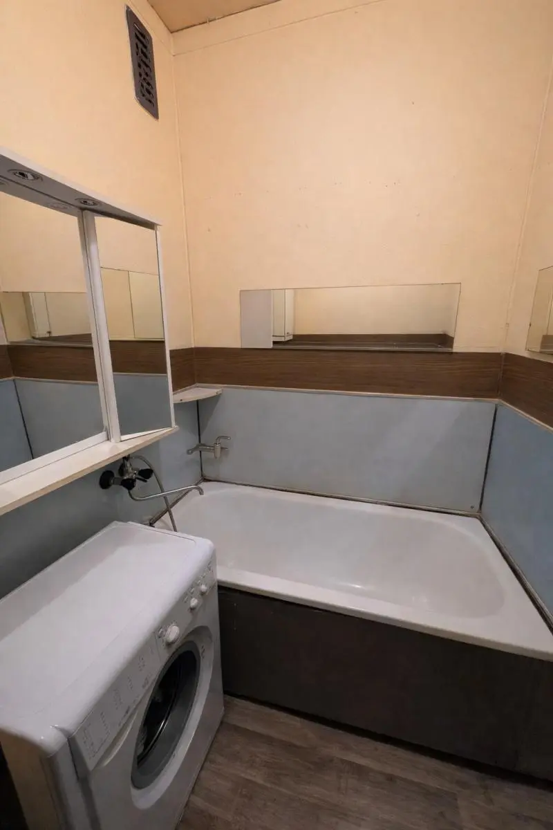 Kuchyň je vybavena kuchyňskou linkou s plynovými kamny. V koupelně je vana a skříňka se zrcadlem, WC odděleno.. Je zde původní umakartové jádro.