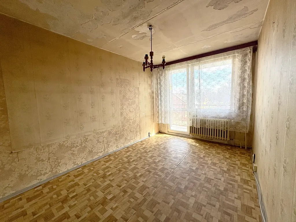 Byt je ve 4.NP panelového domu bez výtahu a je určený k celkové rekonstrukci. V bytě jsou dvě ložnice, obývací pokoj se vstupem na lodžii a samostatná kuchyně. Dále je zde prostorná předsíň a původní bytové jádro s koupelnou s vanou a WC zvlášť. K bytu patří praktická komora přímo naproti bytu. V přízemí domu je dále kolárna/kočárkárna. Byt je i přes malou výměru velmi prakticky řešený a bez problémů ubytuje i rodinu s dětmi. Výhled z bytu je do zahrádek okolních rodinných domků a je v něm opravdu klid.