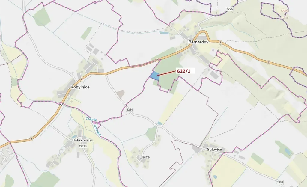 Lesní pozemek o výměře 12 017 m2, parcelní číslo 622/1, podíl 1/1, katastrální území Bernardov, obec Bernardov, obec s rozšířenou působností Kutná Hora, okres Kutná Hora, Středočeský kraj. Po těžbě.