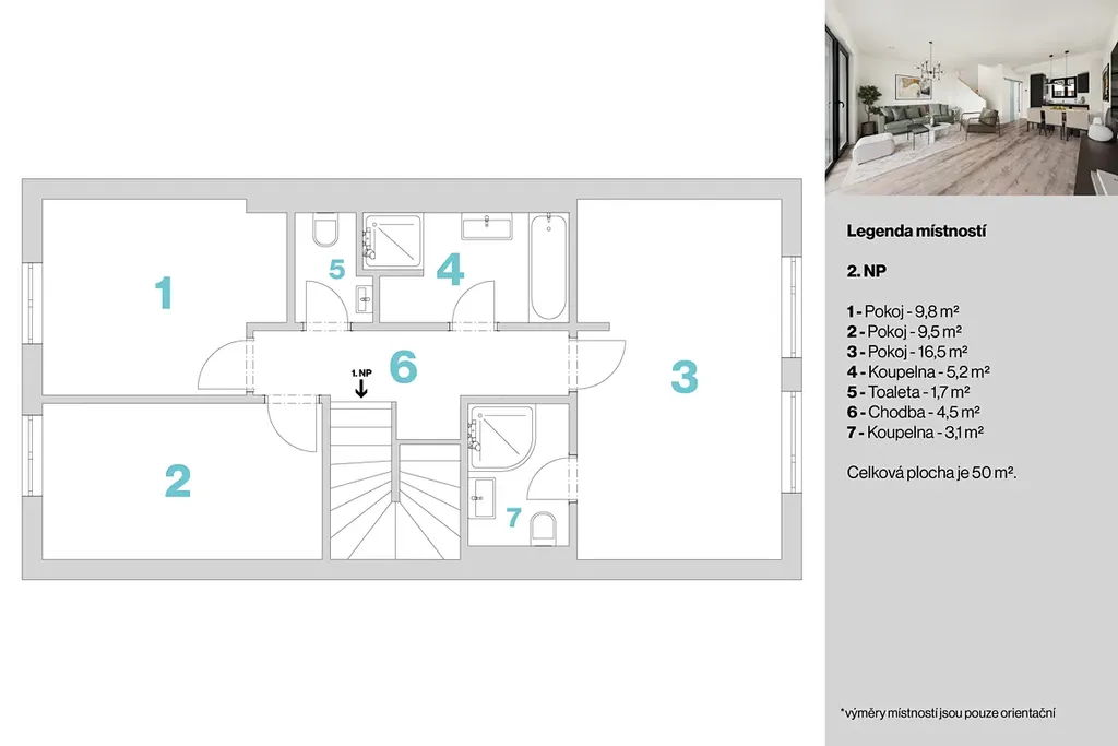 2x samostatné WC, 2x technická místnost, předzahrádka přístupná s terasy z obývacího pokoje, 2x parkovací stání před domem.
