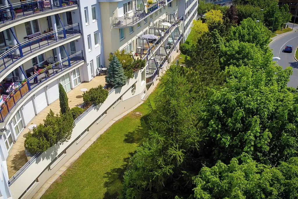Byt se nachází ve zvýšeném 1. nadzemním podlaží činžovního domu. Díky poloze objektu ve svahu odpovídá umístění 2. nadzemnímu podlaží, což zajišťuje vyšší míru soukromí a bezpečí.