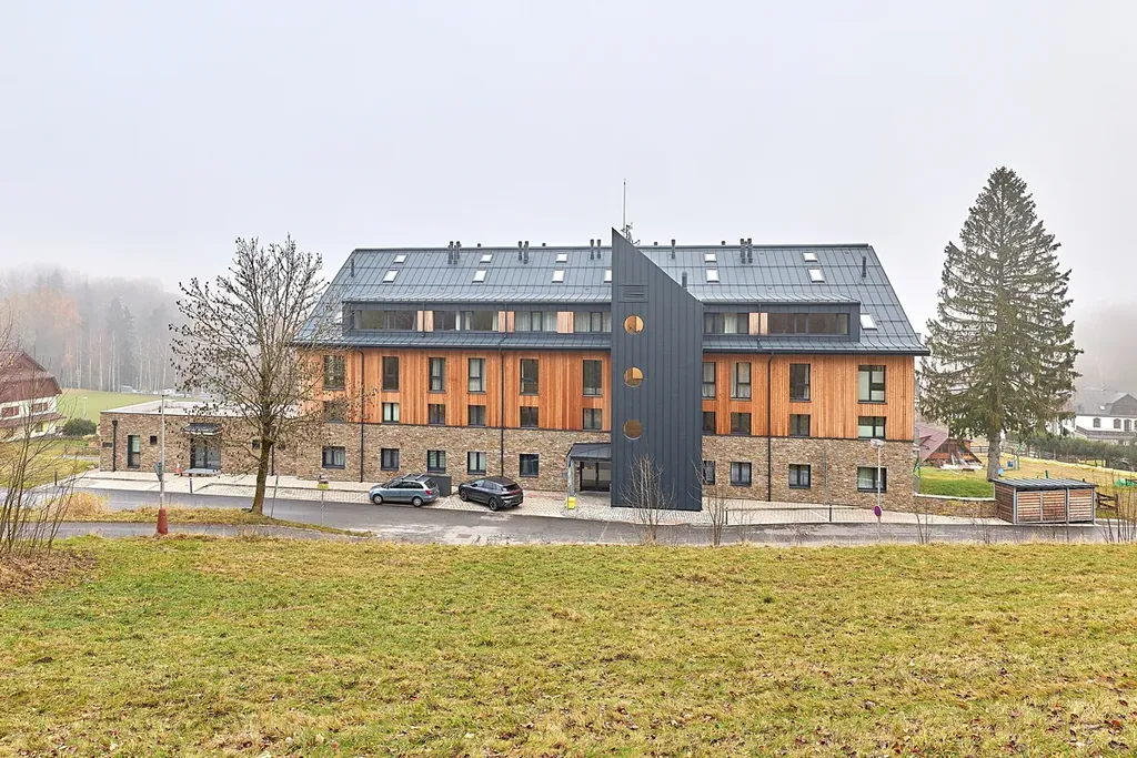 Apartmánový dům byl zkolaudován v roce 2023, přičemž celá stavba je velice kvalitně stavebně i architektonicky provedena. Jeho společné prostory jsou vybaveny vysokými standardy. V přízemí domu se nacházejí parkovací místa, dále bike boxy a lyžárna. V 1.NP je recepce a vlastní apartmány. V dalších patrech jsou umístěny další apartmány. Budova má centrální výtah a správce, který má na starosti veškerou údržbu jak zeleně, tak sněhu. Vlastník apartmánu má k dispozici centrální klíč, kterým se dostane do společných prostor, do apartmánu a otevře si i parkovací místo.