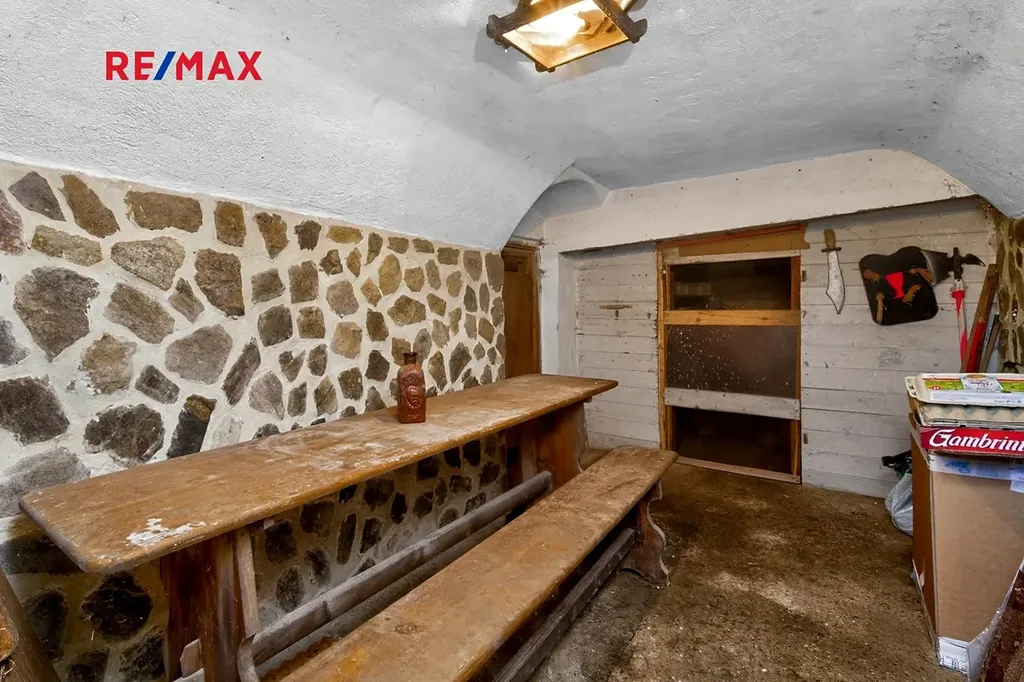 Praktické úložné prostory slouží k uskladnění brambor, navazuje kurník a oplocený výběh.