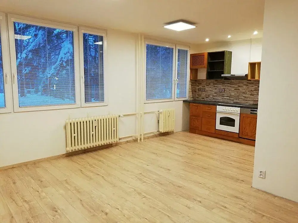 Pěkný byt po rekonstrukci 3+kk 53 m2, Praha 9 - Střížkov, Teplická ul., obývací pokoj s kuchyní, ložnice, dětský pokoj, koupelna, wc, komora. Byt se nachází v 1. nadzemním podlaží (přízemí) uvedeného domu, 5 let po kompletní rekonstrukci - původní pouze obvodové zdi, nové příčky, koupelna, wc, dveře do pokojů posuvné do pouzder, koupelna + wc posuvné zasouvací za sebe. Na všech oknech nové bezpečnostní folie, žaluzie.