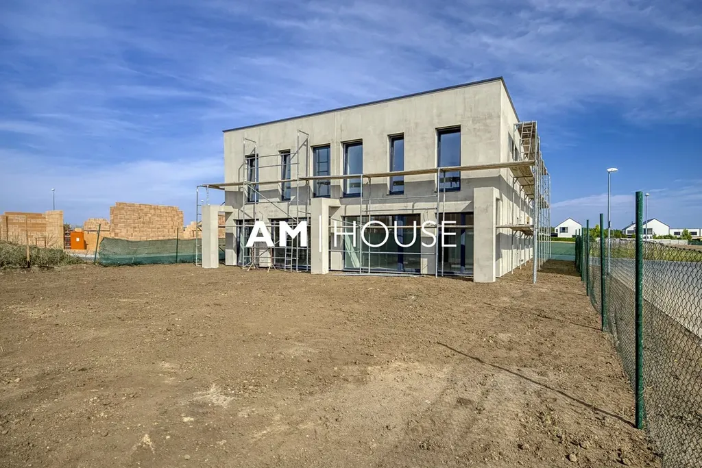 Každý dům má garáž a 2x venkovní parkovací stání. V přízemí za vstupem do domu je prostorná chodba (8,6 m2), dále je zde koupelna se sprchovým koutem a s WC, z chodby vejdete do velkorysého obývacího pokoje s přípravou pro kuchyňský kout o velikosti 32,87 m2. Z obývacího pokoje a kuchyně dostanete do zahrady.