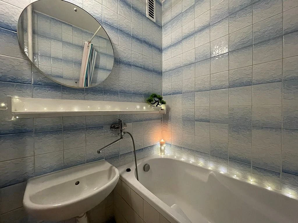 Bezpečnostními vchodovými dveřmi vstoupíme do chodby o výměře cca 7,30 m², ze které je vstup do všech samostatných místností v bytě. Po levé straně se nachází samostatná toaleta o výměře cca 0,90 m², dále koupelna o výměře cca 2,60 m², která disponuje vanou, umyvadlem a pěkným kulatým zrcadlem s poličkou. Další místností je útulná kuchyně, která je o velikosti cca 9,00 m². Kuchyně je vybavena kuchyňskou linkou, plynovým sporákem s troubou, lednicí s mrazákem, mikrovlnnou troubou, pračkou a spíží k uskladnění potravin. Kuchyň je orientována na sever. Velkou výhodou bytu je komora o výměře cca 3,00 m², která je vybavena regály a lze ji využívat jako šatnu. Jedna z obytných místností má výměru cca 12,50 m² a je orientovaná, taktéž jako kuchyně, na sever. Hlavní dominantou bytu je prostorný obývací pokoj o výměře cca 18,30 m² se vstupem na balkón, který je vystavěn do půlkruhu, díky čemuž je prostornější. Balkón má výměru cca 4,80 m². Tato místnost s balkónem je orientovaná na jih.