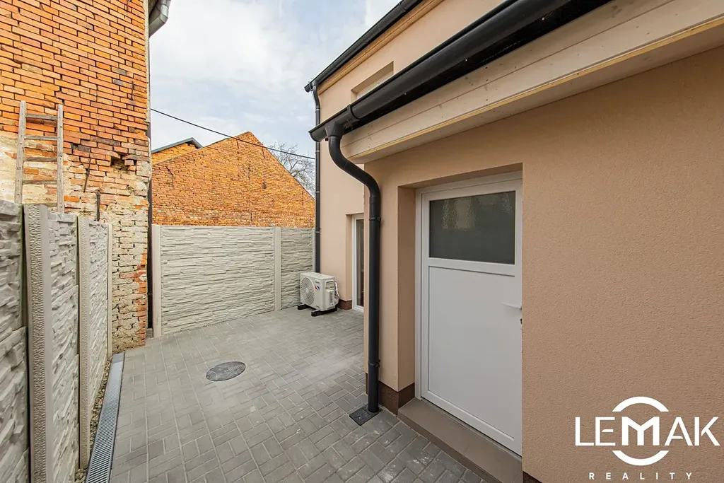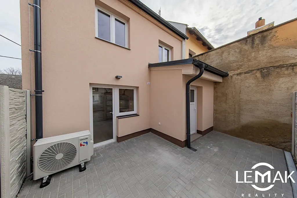 Dům je dvoupodlažní a dispozičně velmi dobře řešen. V prvním podlaží nalezneme vstupní chodbu, samostatné WC, schodiště a prostorný obývací pokoj s kuchyňským koutem. Kuchyňská linka je vyrobena na míru a je vybavena spotřebiči. Z obývacího pokoje je přímý vstup na dvorek/terasu o velikosti 20 m², která nabízí příjemné soukromí pro posezení či relaxaci. V obývacím pokoji je instalována klimatizace. Z dvorku je dále vstup do technické místnosti, kde se nachází elektrický kotel a bojler.