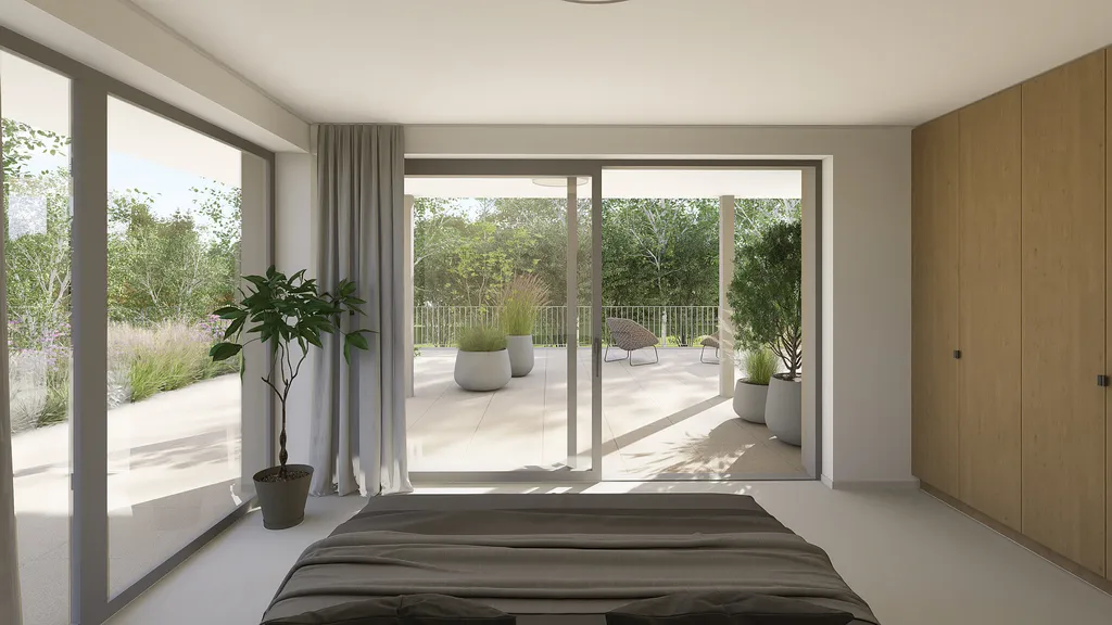 Společně se zkušenými architekty se podařilo vytvořit moderní budovy a velkou mírou prosklení. Navazující okolní zahrada se stane komunitním místem pro všechny majitele bytu. Parkovací místa jsou naprojektována pod budovou a vás tak nebude rušit pohled na stojící vozidla.