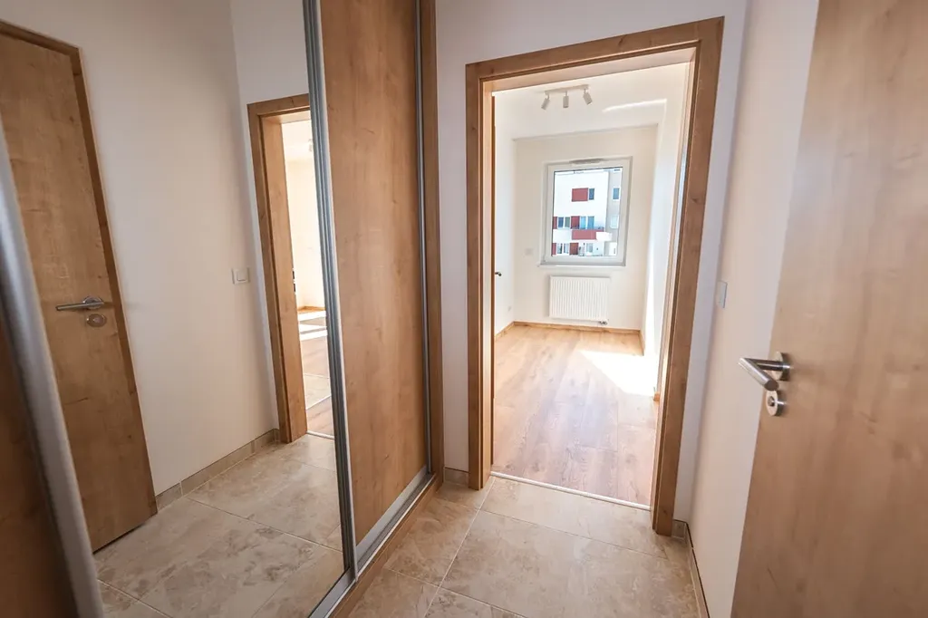 Byt je zařízený novou kuchyňskou linkou se sklokeramickou varnou deskou, troubou, lednicí a myčkou, v koupelně sprchový kout s WC. V předsíni vestavěná šatní skříň.