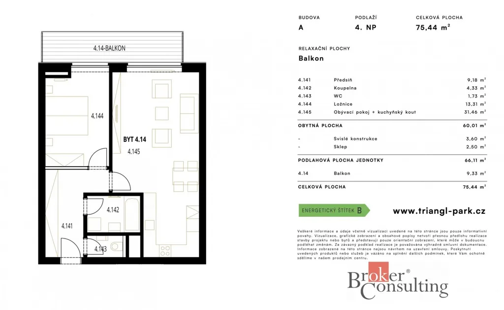 Na pronájem zcela nový byt 2+kk s balkonem ve třetím patře moderního bytového domu v Plzni na Borech, který je součástí nového developerského projektu Triangl Park Plzeň. Byt je vybaven kuchyňskou linkou na míru s vestavěnými spotřebiči, na podlaze najdeme vinyl. V koupelně je vana a WC, v předsíni se nachází prostorná vestavěná skříň. Vytápění je ústřední dálkové. Součástí pronájmu je také sklepní kóje a kryté parkovací stání v suterénu domu.
