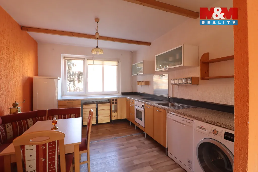 Prodej bytu 3+1 s lodžií, v osobním vlastnictví, ve druhém patře, s obytnou plochou 70 m2, v jedné z nejlepších lokalit v Mostě. Byt je ve velmi dobrém udržovaném stavu. Nachází se zde chodba se šatními skříněmi, zděné bytové jádro - koupelna s rohovou vanou a WC. Obývací pokoj s klimatizací a se vstupem do lodžie, orientované na jihovýchod. Pokoj sousedí s prostornou kuchyní s jídelním stolem a kuchyňskou linkou se spotřebiči – myčka, pračka, elektrická varná deska. Dále je zde menší ložnice a větší dětský pokoj. K bytu náleží zděný sklep. Topení ústřední dálkové, dům zateplen, okna plastová. Poblíž domu se nachází obchody, mateřská školka, škola a restaurace. S financováním Vám pomůže naše Hypoteční centrum.