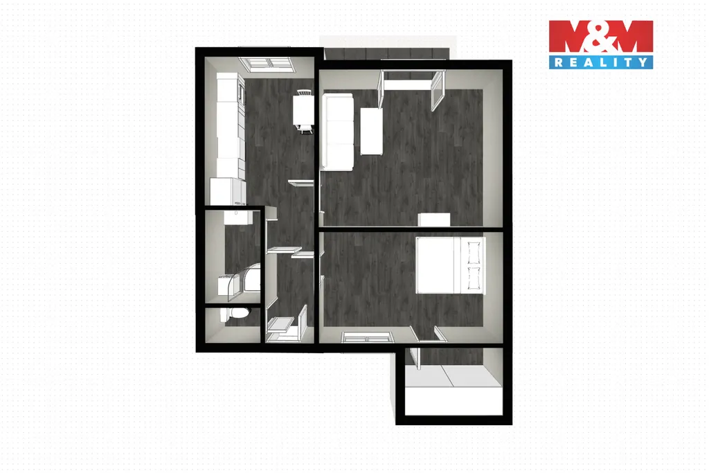Dominantou bytu je výhled do zeleně a možnost využití společné zahrady za bytovým domem k relaxaci či posezení s přáteli. K bytu náleží jedno parkovací stání přímo ve dvoře.