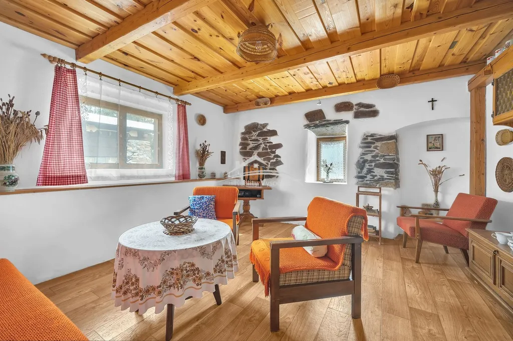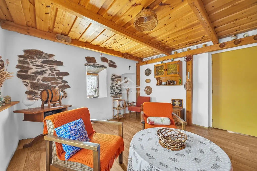 Interiér domu si zachoval původní atmosféru venkovského stavení, nachází se zde původní klenuté a trámové stropy, které dodávají domu jedinečný charakter. Chalupa se prodává včetně vybavení tak, jak je zachyceno na fotografiích, a je tak připraven k okamžitému užívání.