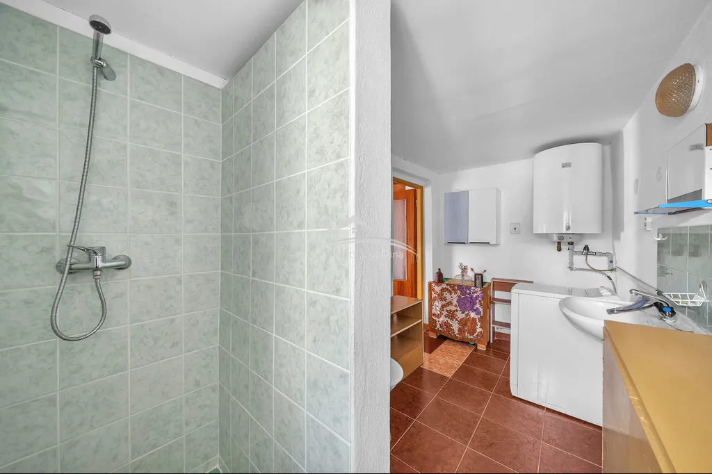 Dispozice domu 3+kk zahrnuje také verandu, dále koupelnu se sprchovým koutem a splachovacím WC, přičemž teplou vodu zajišťuje elektrický bojler. Vytápění je řešeno lokálními kamny na tuhá paliva (PETRY). Nad celým domem se nachází prostorná půda s možností vestavby.