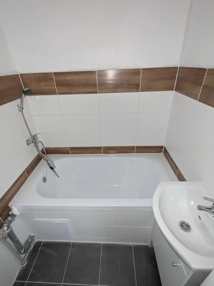 V kuchyni je kuchyňská linka zatím bez sporáku, který bude dodán. V koupelně je vana a umyvadlo se skříňkou, WC odděleno. Celá koupelna je obložena vkusnými obklady do moderního stylu. Místnosti jsou světlé a prostorné. K bytu náleží sklep.