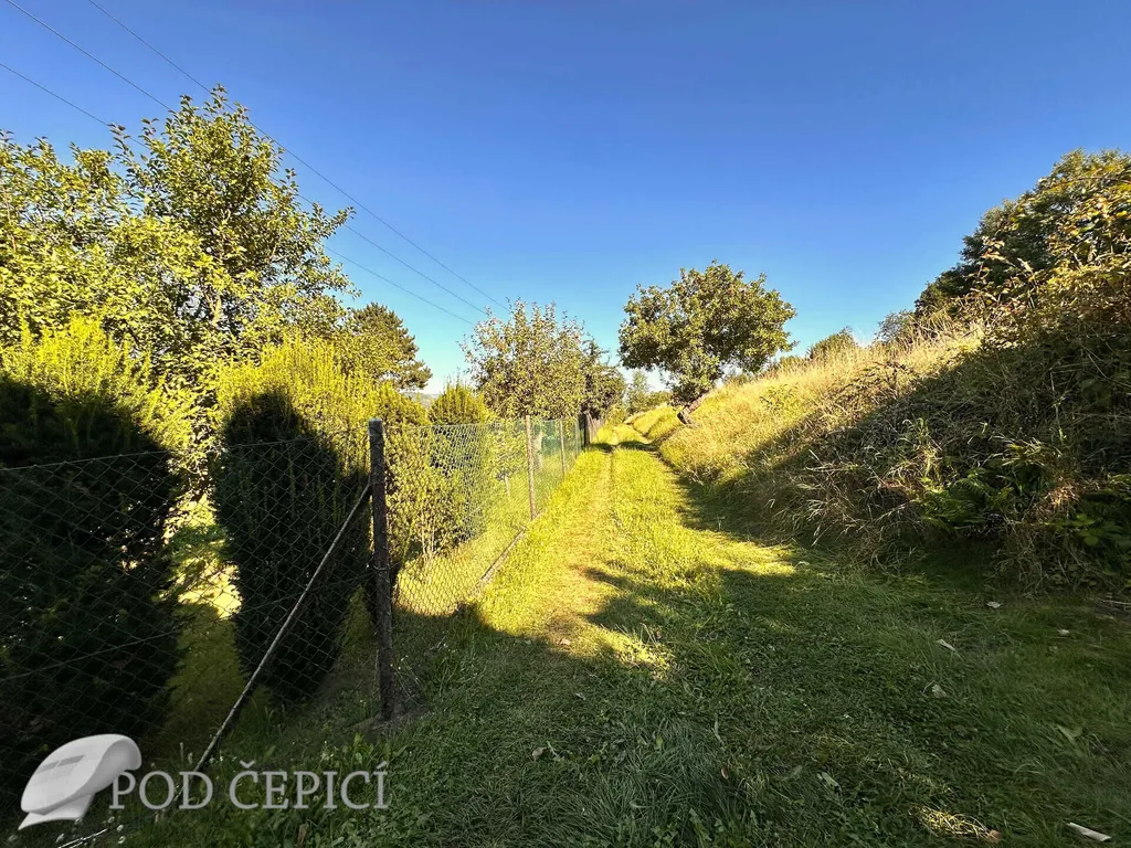 Zahrada je oplocená, převážně zatravněná s ovocnými stromy. Pozemek v šíři 14 - 19 m a délce 105 m je souběžný s vrstevnicemi a je mírně svažitý směrem k obci. Parcela je přístupná z krátké strany po zpevněné veřejné komunikaci z ulice V Zahradách, případně ze zadní strany pozemku, po nezpevněné lesní komunikaci od „křížku“ z ulice Žerůtská. Podél zahrady směrem k Lysicím se v současné době buduje nová, soukromá komunikace, která bude sloužit pro výstavbu 5 nových rodinných domů situovaných pod zahradou. Využití tohoto přístupu k zahradě je nutné diskutovat s vlastníky komunikace.