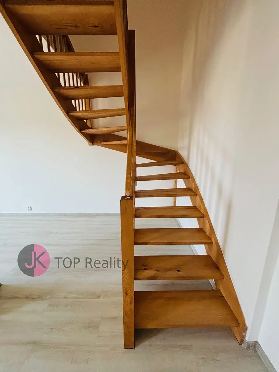 Celková plocha pozemku je 143 m2, z toho zastavěná plocha a nádvoří je 103 m2, užitná plocha cca 100 m2, zahrada 40 m2. Dispozice domu: 1.NP – chodba, komora, sprchový kout + WC, obývací pokoj + kk (sklokeramická deska s el. troubou, myčka na nádobí, digestoř), podlahové vytápění. 2.NP – 4 pokoje, terasa, koupelna s rohovou vanou a WC.