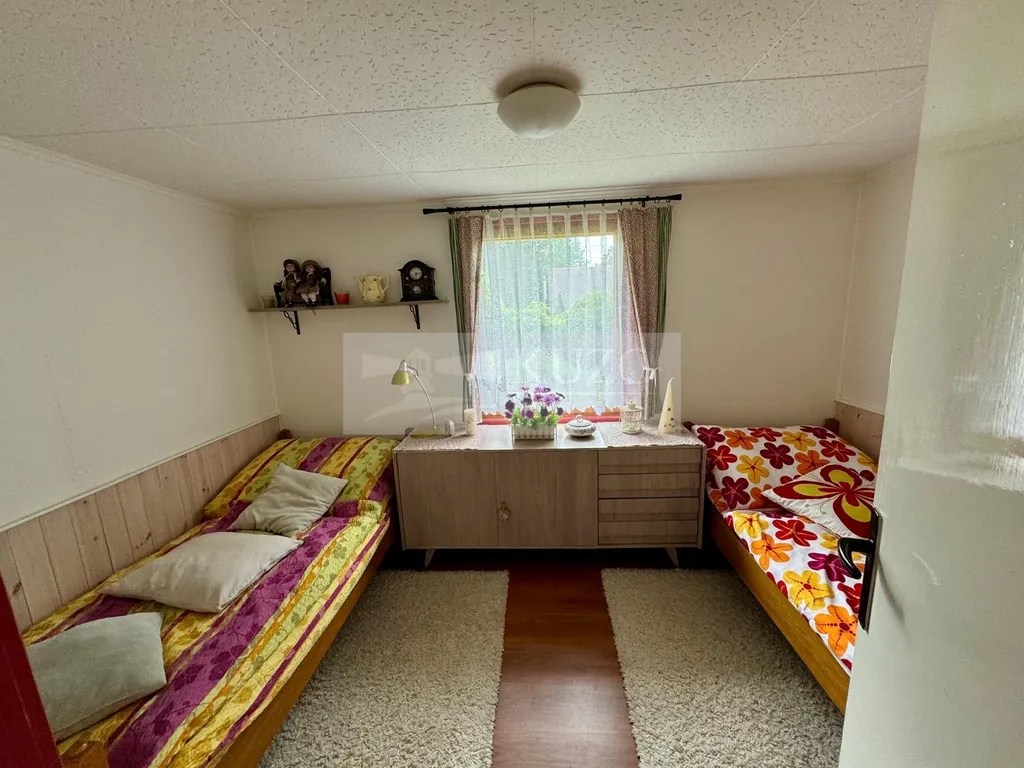 Vstupem na pečlivě udržovaný pozemek se v přízemí nachází zděná garáž a vedle ní praktická dílna. Toto zděné přízemí tvoří základ nadstandardní obytné části umístěné nad ním. Přes vstupní prosklenou verandu se vchází do prostorného obývacího pokoje, ze kterého je přímý přístup do plně vybavené kuchyně a koupelny s toaletou. Dále se nabízí další obytný pokoj momentálně určený k relaxaci, na který navazuje ložnice. Celý interiér je promyšleně prosvětlený a nabízí vysoký standard pohodlí.