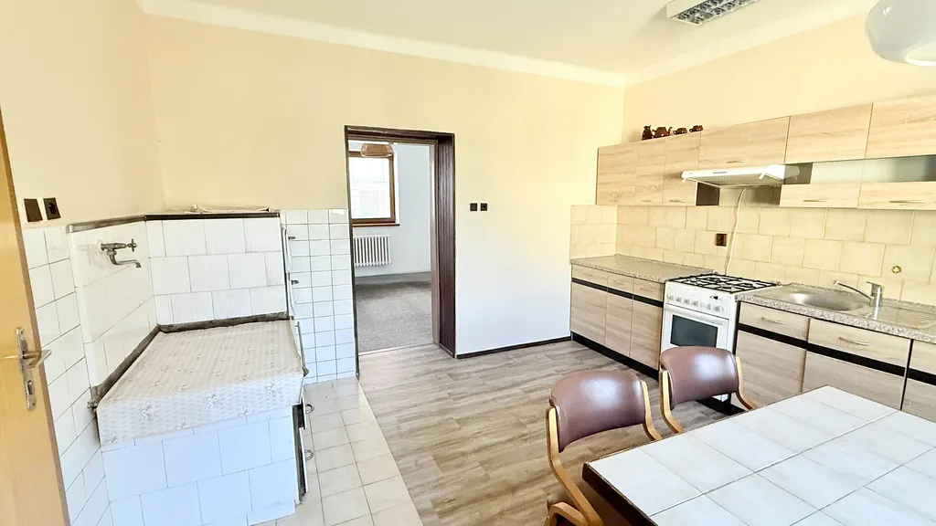 Přízemí domu je promyšleně rozděleno a poskytuje veškeré zázemí pro pohodlné bydlení. Naleznete kuchyni, dva světlé pokoje o rozměrech přibližně 3,97 x 3,93 metru a velkorysých 4,8 x 4 metry, praktickou koupelnu o rozměrech 2,08 x 1,72 metru s vanou i sprchovým koutem a samostatné WC o velikosti 2,08 x 1,05 metru. Dále je k dispozici technická místnosti, s užitnou plochou 4,49 x 3,56 metru a 4,6 x 3,74 metru. Nemovitostí prochází praktický průjezd o šířce 3,26 metru a délce 8,7 metru, který usnadňuje přístup na pozemek.