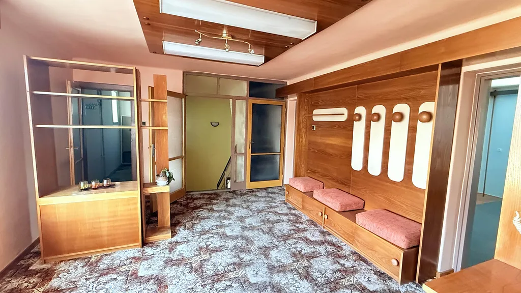 První patro je přístupné přes vstupní halu o rozměrech 4,48 x 3,95 metru a nabízí další plnohodnotné obytné prostory. Dominantou je další kuchyně o ploše 4,4 x 3,95 metru, doplněná o tři světlé a prostorné pokoje – prostřední pokoj 4,15 x 3,68 metru, pokoj vedle kuchyně 3,79 x 4,08 metru a třetí pokoj 4 x 4,6 metru, které poskytují dostatek soukromí pro každého člena rodiny. Praktická komora o rozměrech 3,38 x 1,58 metru a vstup na půdní prostor, který skýtá další potenciál pro rozšíření, jsou samozřejmostí. Výška stropu 2,45 metru dodává místnostem vzdušnost a otevřenost.